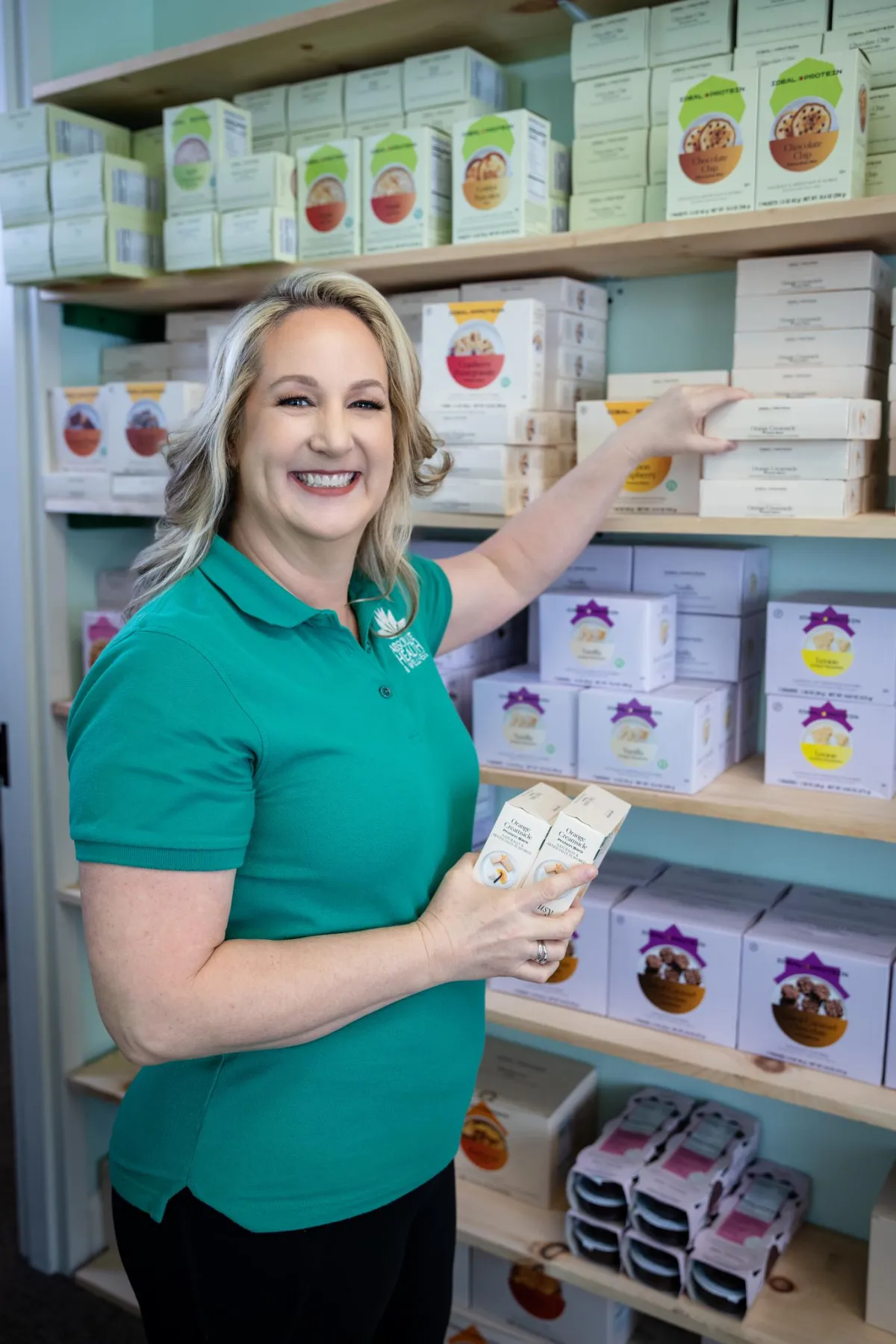 Maureen is also the Director of Ideal Protein at Absolute Health & Wellness, which is our medical weight loss program. I was first introduced to Ideal Protein in July, 2010. After having my first baby in 2008 with the extra weight just sticking, I finally lost those extra 30 pounds with Ideal Protein where I finally felt comfortable again in my own skin. This program is a lifestyle change and has been so fantastic for my entire family by helping to educate what healthy eating is all about. In March 2018, I obtained my Health Coach certification to further help our clients with habit changes that are so important.
